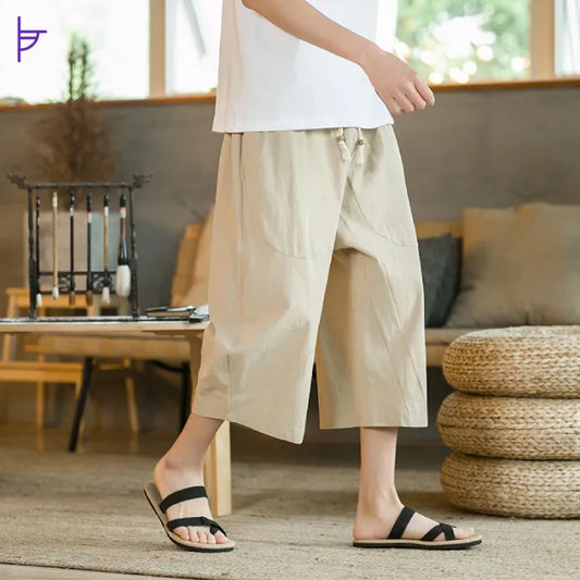 Pantacourt 3/4 Homme Lin Beige