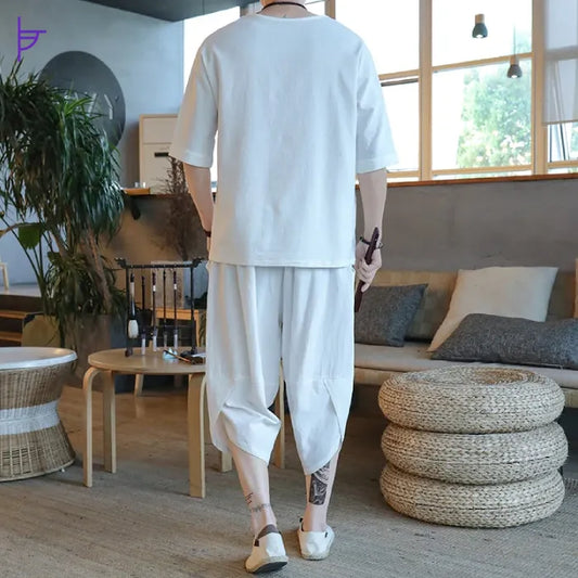 Pantacourt Homme 3/4 Lin Blanc