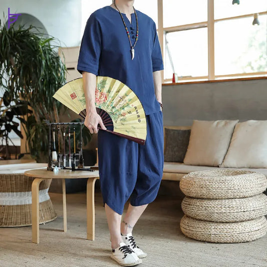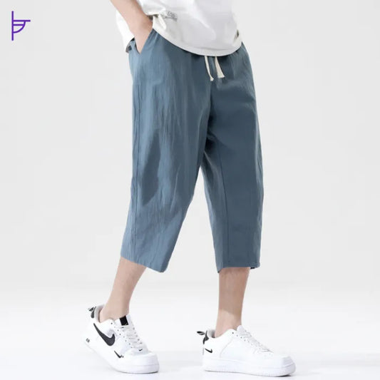 Pantacourt Homme 3⁄4 Lin Saphir