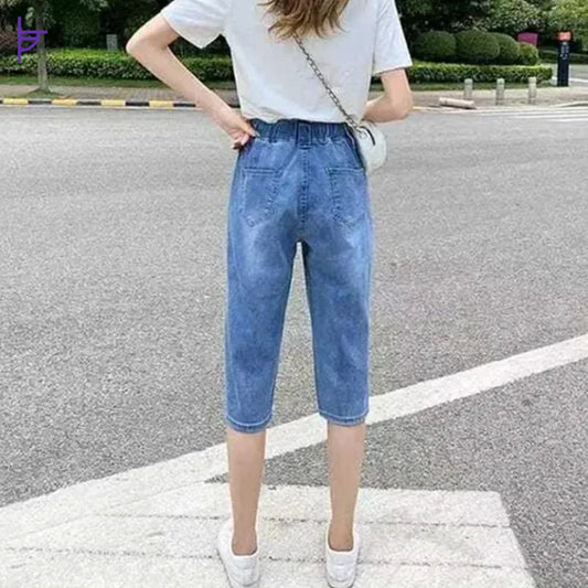 Pantacourt Jean Femme Taille Elastique SF