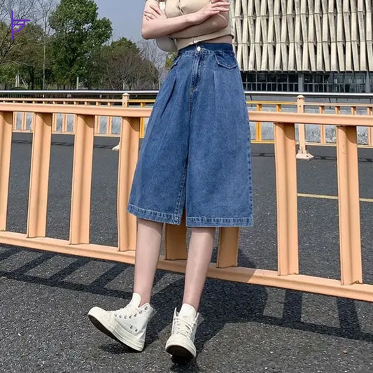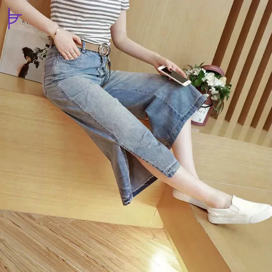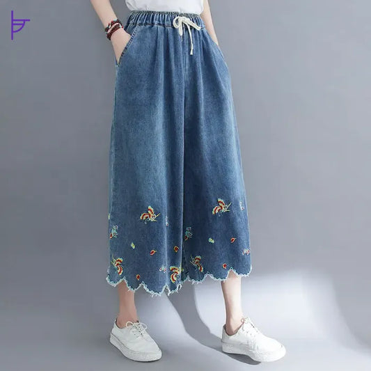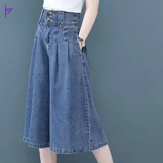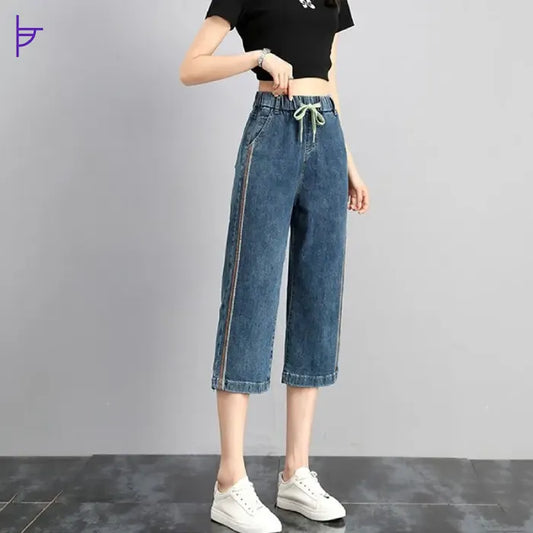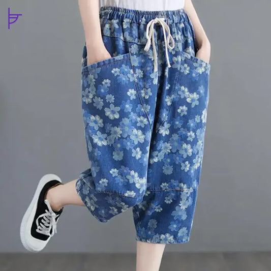 Pantacourt Femme Jean Taille Haute Boho