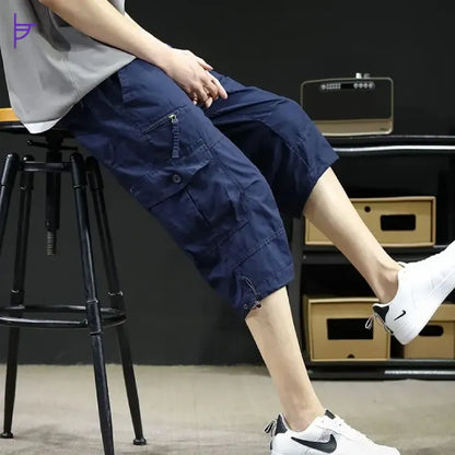 Le Pantacourt Cargo Camouflage Bleu Navy est la rencontre parfaite entre le caractère de la marine qu'on retrouve avec cette symbolique teinte bleu et la praticité d'un pantalon cargo. Un charme unique qui en fait une pièce indispensable que vous devez avoir dans votre garde-robe estivale pour des balades inoubliables en bord de mer.